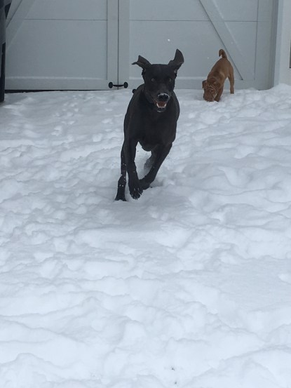 My dogs “helping” me clear my driveway… again.